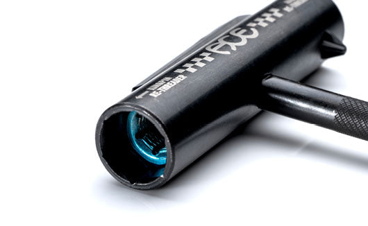 Redefining the use of a skate tool. Even smaller in size than our Classic tool. Recessed into the wheel and truck wrenches are hardened steel re-threaders to easily tune your trucks up anywhere. Knurling on the handle mounting hardware piece ensures ease of use and in a pinch can be used to file your griptape around the edge of your board. Check-ball engagement mechanism on the Phillips/Allen key and mounting hardware tool prevents loss.