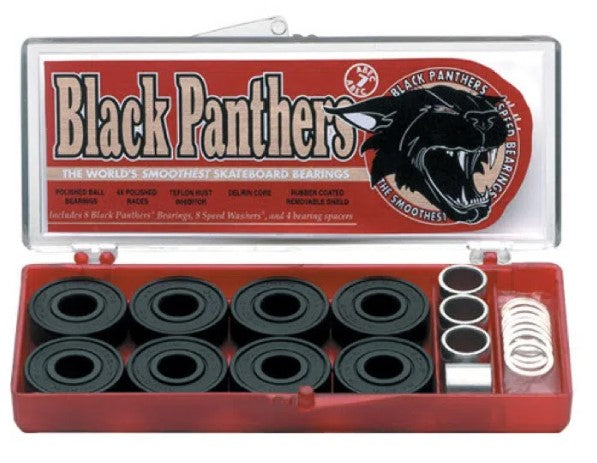 Black Panthers; Genuine 100% Teflon Oil, Delrin Core, Rubber Coated Removable Shield, Polished Bearings, Polished Races. Each set includes free bearing spacers and speed washers.