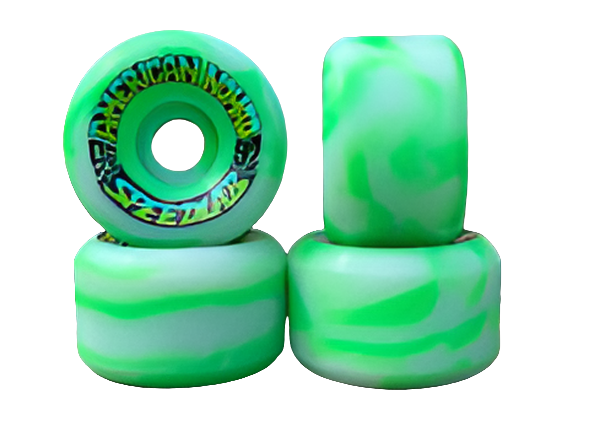 'Grass stain' Nomads 56mm/97A by Speedlab Wheels. This colab wheel with American Nomad Skates is the result of a collaboration of ideas by skateboarders for skateboarders. These natural/green swirl Nomads are an ATW (All-Terrain Wheel) which is great for everything from curbs & street to transition and all surfaces from rough to slick & smooth. This wheel checks in at 56mm/97A and has rounded conical cuts on each side to provide a highly functional profile & shape made from the best formulas in the world for ultimate speed & control. Pick up a set and join the #nomadarmy today! Artwork by Michiel Walrave.