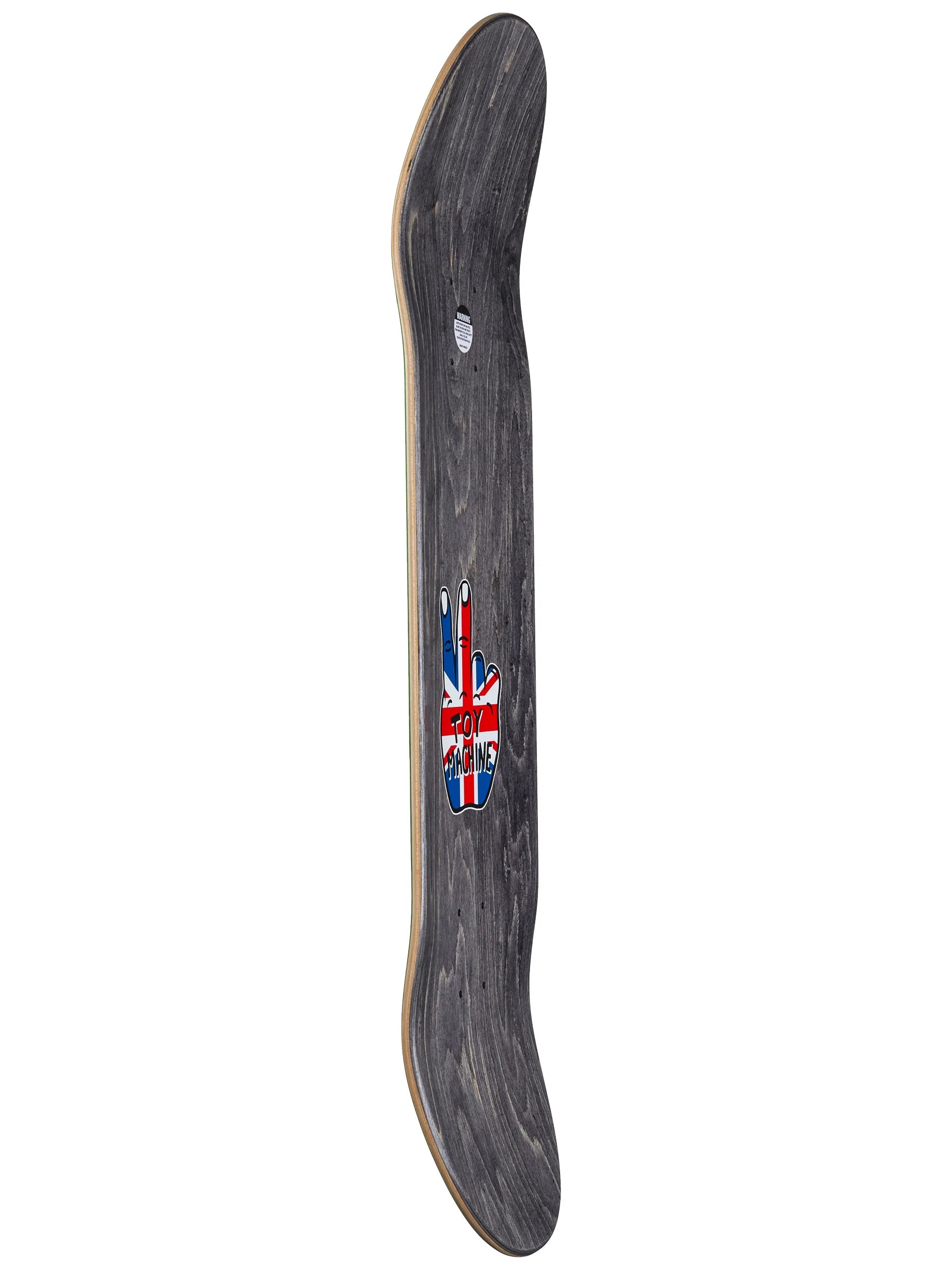 Hit the streets with the Toy Machine Rowley Union Jack Deck 8.25 x 32. This is a pro quality skateboard deck constructed from 7-ply maple wood with background stains that may vary.