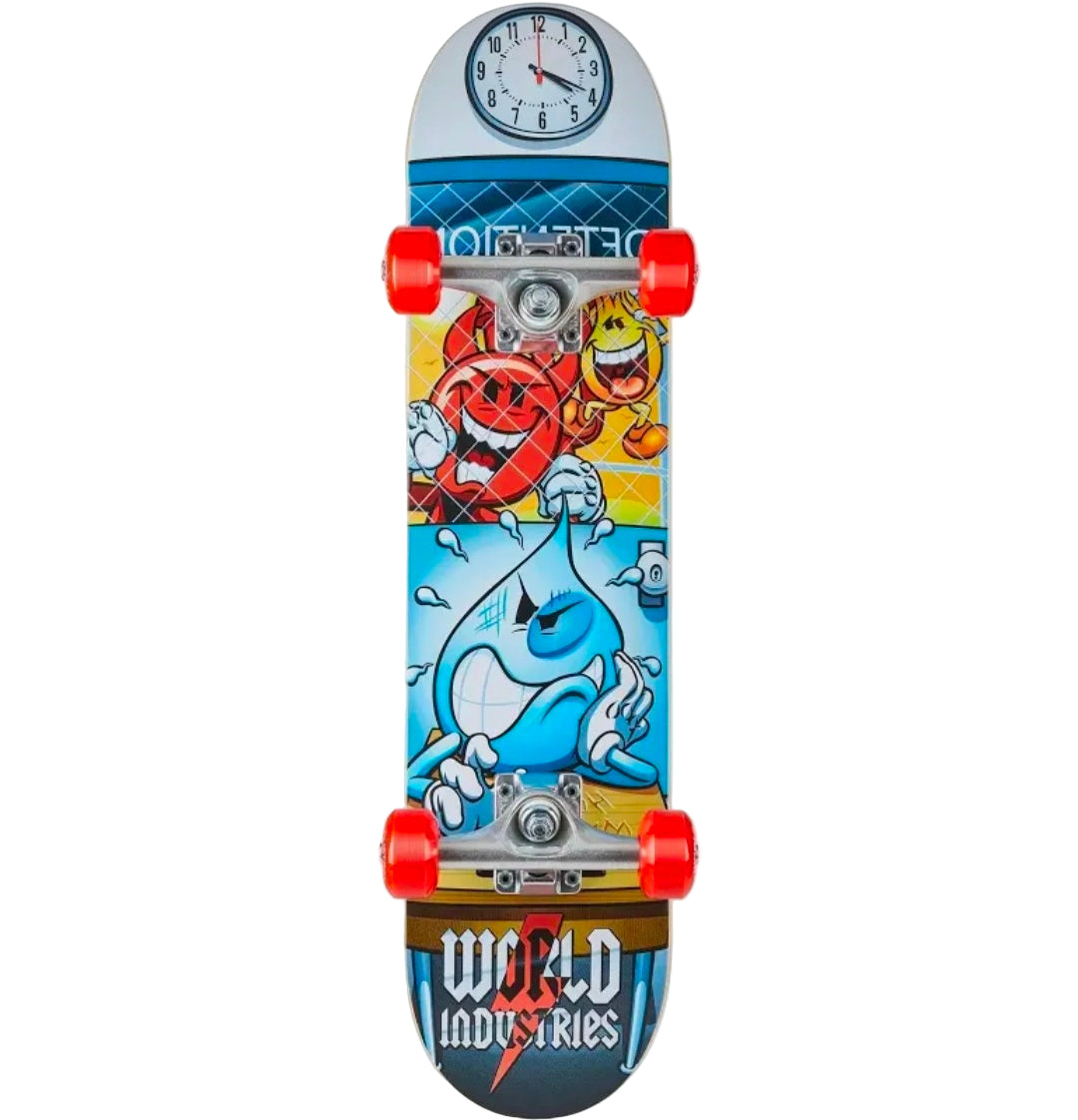 World Industries is dedicated to making the highest quality products available with proven performance at a very affordable price. The World Industries Detention Softtop Complete Skateboard in 6.5 x 28.5 is a complete skateboard from World Industries with soft top griptape instead of the normal abrasive griptape typically found on a standard complete skateboard. All set up right out of the box. World Industries detailing throughout.